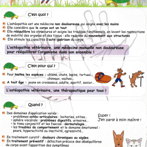 Je, Dre Sophie Bonneau, vétérinaire depuis 20 ans, vous accueille au cabinet Ellébore pour des consultations d'ostéopathie sur les chiens, chats et NAC et me déplace à domicile pour les bovins et les équidés. Formée en physiothérapie, kinésithérapie et rééducation, je propose une prise en charge personnalisée de chaque animal. Douleur et diminution d'activité de votre compagnon ne sont pas des fatalités. Un traitement adapté à chaque animal est possible, quelles que soient ses difficultés de mobilité. Le cabinet est équipé de la thérapie laser, d'électrostimulation, d'un tapis roulant, de différents matériels thérapeutiques. Je vous reçois dans un endroit calme et chaleureux. Bien-être et qualité de vie animales sont au cœur de ma pratique.